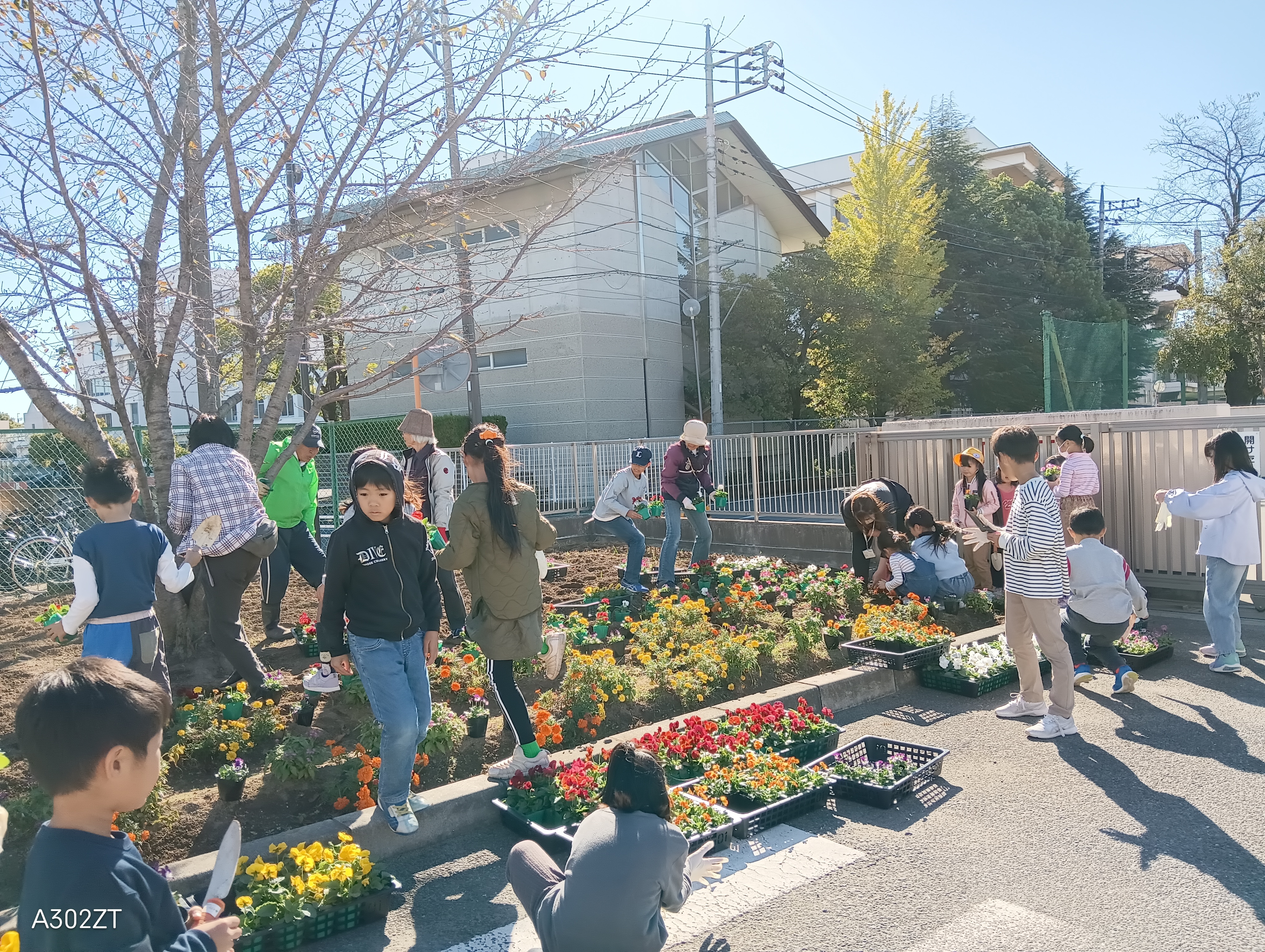 子どもたちや地域の方々との植花活動