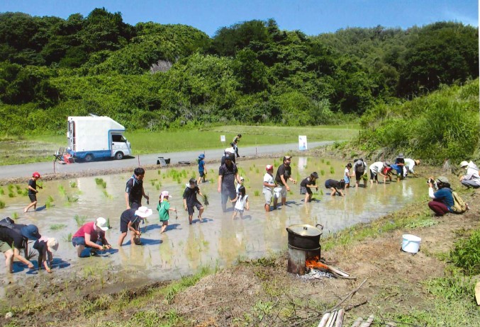 「遊休農地を活用した棚田田植え体験です。」