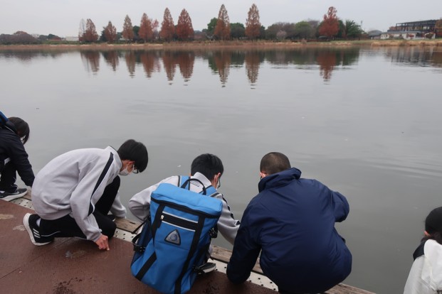 総合的な学習における探究活動(里沼学習)では、1学年は里沼の環境、2学年は里沼の文化、3学年は里沼の魅力発信(地域との関わり)をテーマに活動しています。敷地内にある豊かな自然環境資源を生かした活動を通して、環境に対する興味関心を高め、主体的に環境保全に関わろうとする生徒の育成を目指しています。